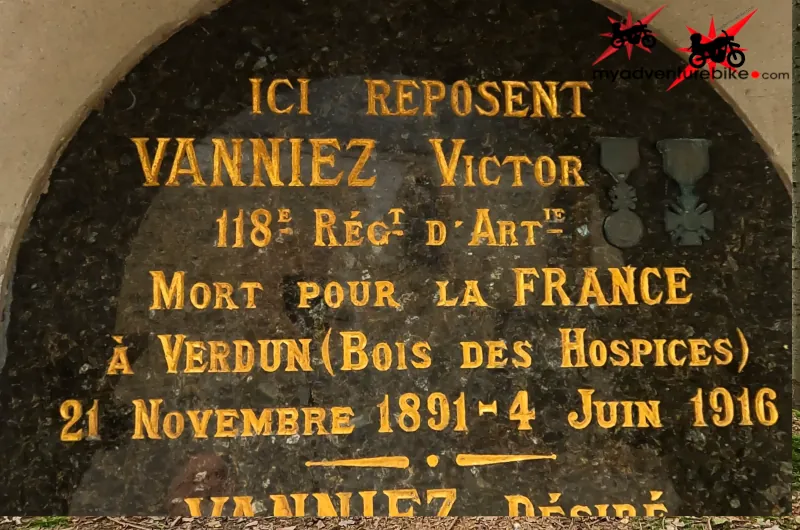 L’Argonne , c’est la région autour de Verdun qui a été le théatre de sanglants affrontements durant la guerre 1914-1918. En me rendant au cimetière d’Escoeuilles, dans les Hauts de France, la tom de Victor Vanniez m’est apparue, et il y avait une inscription qui allait donner du sens à un road trip que j’avais préparé depuis quelques temps, en prenant soin de passer par les sites importants de cette région.